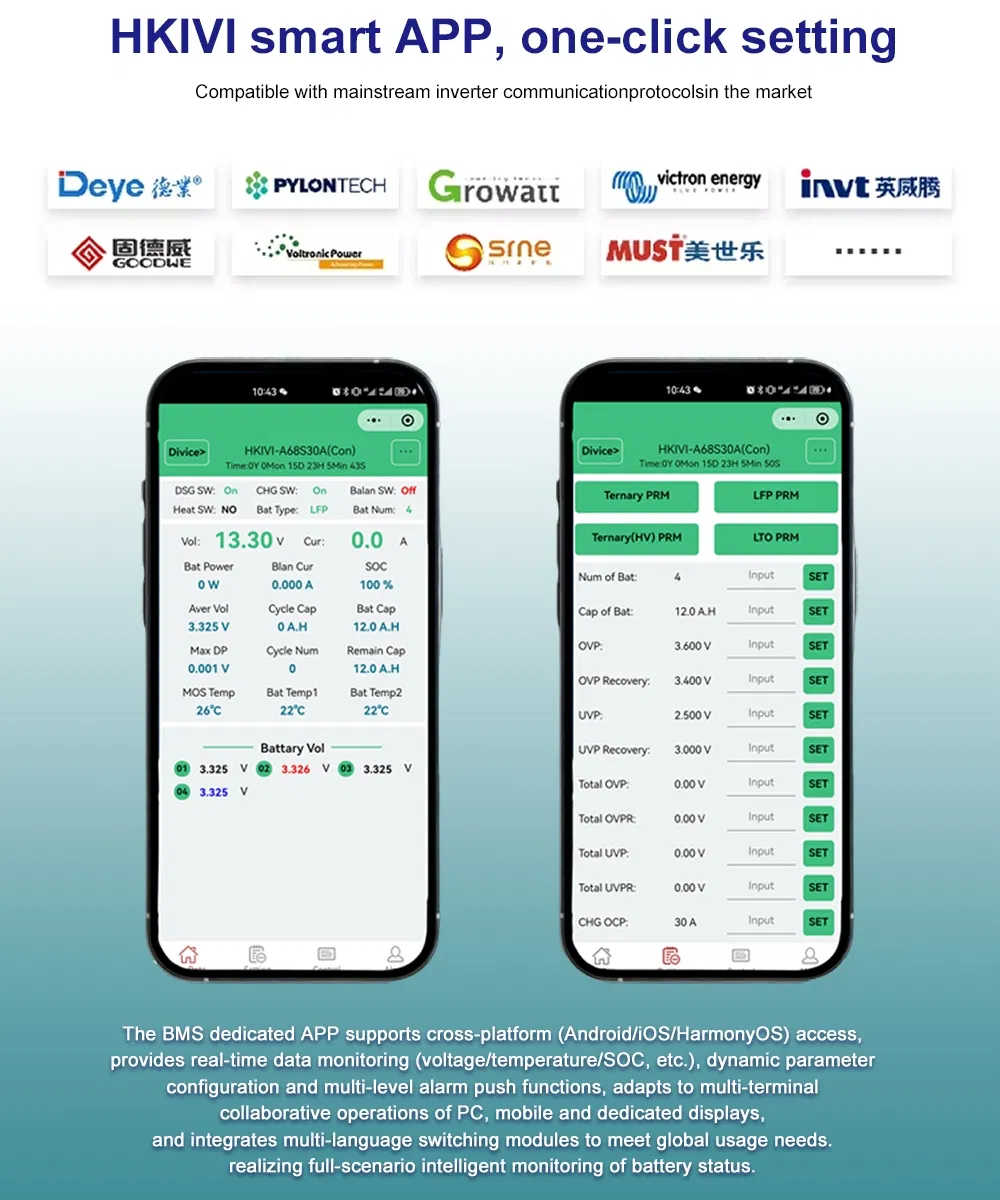 BMS is required for diverse applications including: Electric two-wheelers, electric tricycles, home energy storage, outdoor energy storage, AGV, RV energy storage, battery swapping, electric wheelchairs, and Lead-Acid to Lithium upgrades.